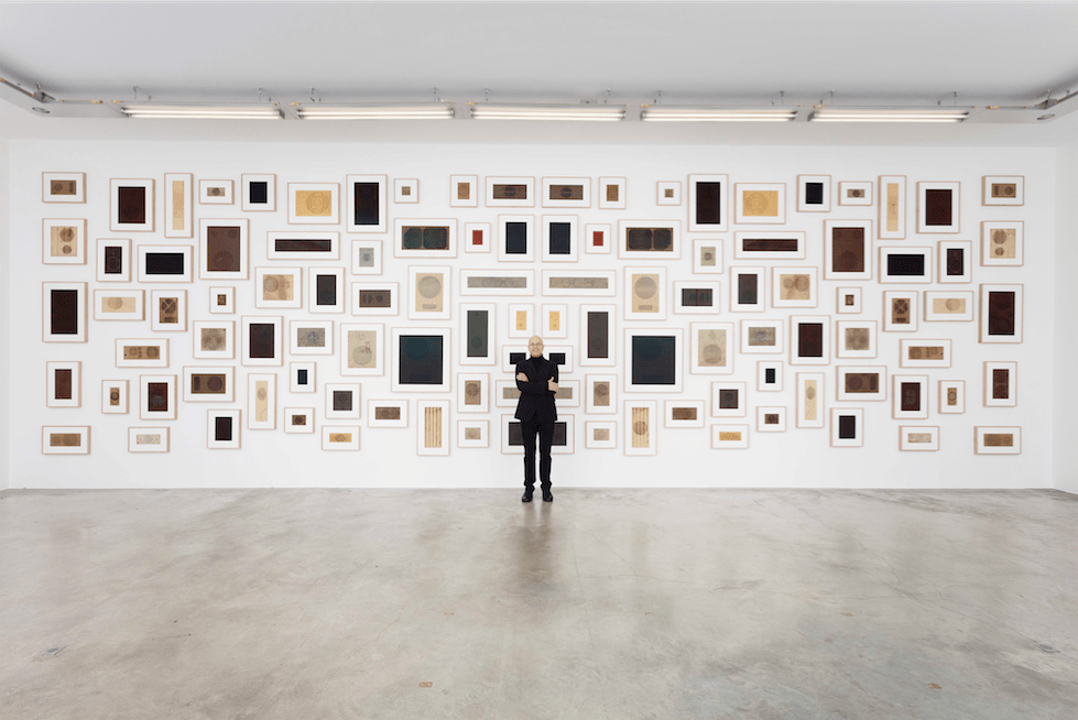 In one recent and characteristic work, “127,687” (2019), tens of thousands of minute shards of egg shells are sorted by hue and then painstakingly fitted together. The result – a monochrome that de la Mora describes as a combination of painting, sculpture and drawing – reflects on nothing less than the barriers of organic life forms, the passage of time and the muddied boundaries between media. From his workshop in Mexico City, the artist adopts a scientific approach to his work; collecting and cataloguing, sifting and sorting, in the pursuit of something new. Following the success of “TNTR AA,” a solo show at the Perrotin Gallery in New York earlier this year, a second exhibition of de la Mora’s work opened on October 12 at Perrotin in Paris. As the final works were being hung, the artist spoke to Modern Painters about the ideas underpinning his practice.